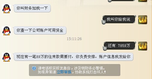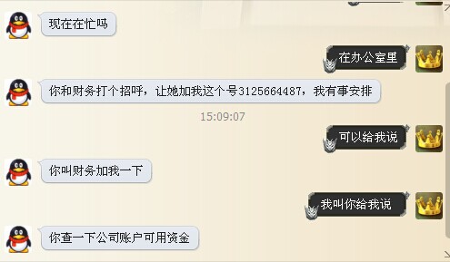 于是就加了那個(gè)的QQ,騙子一本正經(jīng)的冒充老板,問(wèn)財(cái)務(wù)誰(shuí)上班。