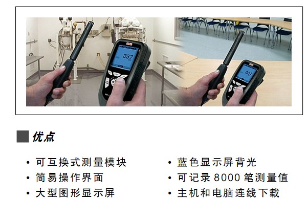 本儀器為法國KIMO公司出品,北京儀特諾電子科技有限公司原裝進口,CO2\CO濃度檢測儀AQ200主要用于檢測室內(nèi)和管道空間的CO2\CO濃度及溫度濕度等。測量原理:NDIR –非擴散性紅外線吸收傳感器,某特定氣體吸收特定波長的光,紅外線光源所發(fā)射的一些照射被氣,體所吸收.紅外線傳感器感測的光照總量和二氧化碳濃度成反比。