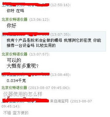 2013年8月上海寶盛儀表電器配套廠咨詢了儀特諾密度計,他有一款產(chǎn)品是粉末冶金做的螺母,想測試其密度,需要儀特諾推薦一款實用的密度測試儀。