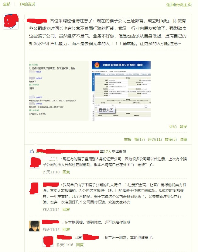 剛在空間看到一則朋友發(fā)的說說,提醒采購(gòu)朋友們別上當(dāng)。(見下圖)